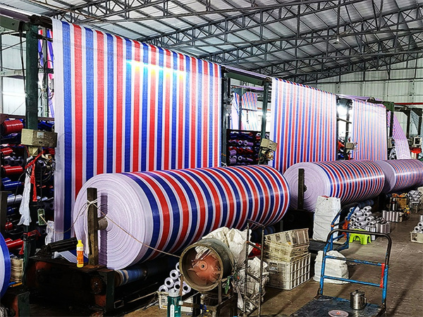 PP彩条布是以聚丙烯(Polypropylene)为主要原料,通过拉丝、编织、覆膜等多道工序制成的一种塑料防水布。其表面通常为红蓝、绿白、黑白等鲜艳彩条,视觉醒目,兼具提示与美观功能。本品规格为4米宽、50米长,适用于大面积覆盖需求,常见于建筑工地、货物堆场、临时工棚等场合。